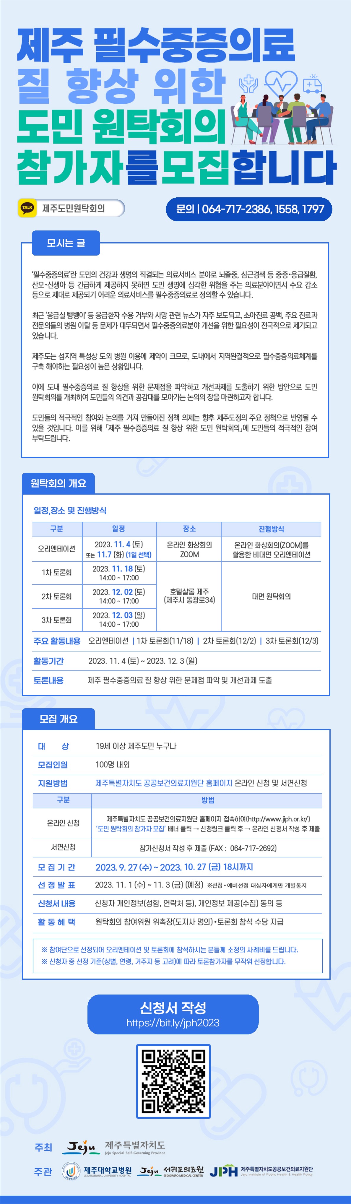 - 2023 제주 필수중증의료 질 향상 위한 도민원탁회의